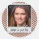 photoframe on white & brown polkadot classic round sticker
