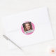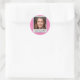 photoframe on white & pink polkadot classic round sticker