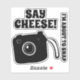 Three funny laptop or notebook stickers for the photographer. This set includes a camera, text that says, "I'm about to snap", and text that says, "Say Cheese!" These stickers are perfect for just about anything you want to stick them to, They work with luggage, water bottles, phone cases, helmets, bikes, skateboards, and more....