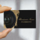 Photographer Camera Modern Black & Gold Photography Business Cards.