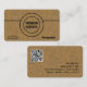 Simple and cute design for photographer business card. The background is brown kraft which makes the card modern and trendy. The design contains camera vector illustration, in the lens you add your name and speciality to personalise in a white frame. The QR code add a smart and sophisticated touch to the design.