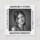 Modern and chic design for photographer business card. The background is white smoke which makes the card simple, stylish and trendy. The design contains black and white customisable photo wich recalls vintage designs. The QR code and social media to personalise on the back add a smart and sophisticated touch to the design and allows your customers to scan and connect with you in social media.
