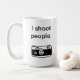 Now you can let other's know that you like to shoot people when you enjoy your hot beverage in this mug. Bring this mug to your tea party and let all your friends know how much you like shooting people. Perfect for the minimalist hipster photographer in you. The mug is friendly for people that are left and right handed! Enjoy your drink any way you want and still display the same image! As you can see by my store name, I'm poor. So when you buy this mug you'll be helping me earn money towards a new camera.