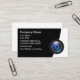 Photography business card camera lens theme in a simple modern photographer themed custom business card template for a photographer service, videographer, event planner, or photo studio.
