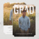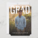 This modern graduation design features a clean, magazine-style layout with a full-bleed portrait photo on the front and bold, oversized “GRAD” typography for a confident, celebratory look. The soft natural background and warm lighting give the design a polished yet approachable feel, making it suitable for both high school and college graduates. On the back, the design transitions into a graduation announcement combined with a party invitation, including space for an additional photo and personalized event details. The overall aesthetic is timeless and versatile, perfect for sharing graduation news while inviting friends and family to celebrate this milestone.