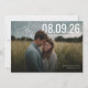 This elegant PhotoPop save the date photo template highlights a romantic engagement photo with soft, natural tones and a modern script accent. A bold date display pairs beautifully with delicate typography, creating a timeless design that feels both personal and refined. The layout is designed to showcase your photo while allowing easy customization of names, date, and location. Perfect for couples looking for a stylish, photo-forward save the date with a warm, modern wedding aesthetic.
