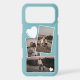 A beautifully designed light teal blue green cellphone case with space to personalize it with three pictures of your choice. Adorned with cute hearts, this phone case makes a perfect Mother's Day gift for mom.