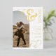 A modern, bold names wedding invitation with custom names with a hand written calligraphy and serif font, 2 names , two styles. All the text, names and background colours are customisable with 2 photos and arch shaped photo with real gold foil on simple white background. A simple and minimalist invitation.