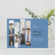 These modern 7" x 5" graduation announcements feature placeholders for four uniquely cropped photos to subtly show off your favourite photos on a cobalt blue background with ivory and black lettering. Back of card is black with ivory lines design.
