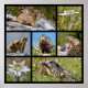 Seven photos mosaic of Alpine marmot (Marmota marmota - Mammal) and edelweiss (Leontopodium nivale) in the mountains of the French Alps