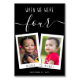 A modern, more original way to personalise your table numbers with childhood photos of bride and groom at that number age (the default is four). The placeholder photos of a little girl (the bride) and a little boy (the groom) have retro white borders, overlapping, in the lower half. The names of the bride and groom are written on the photos' lower white borders. In the upper part, there is the message "when we were [age]" with the age written in a modern script. In the lower part, under the two photos, there is the date. The background has a modern shade of brown, most text is white (except the names on the photos, that are also brown).