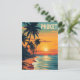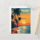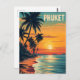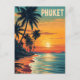 This beautiful vintage poster showcases the tropical allure of Phuket at sunset. Silhouetted palm trees stretch over a golden beach as the sky glows in warm retro tones of orange and pink. The nostalgic texture and vintage colour palette capture the essence of a peaceful Thai paradise, perfect for evoking the spirit of mid-century travel and exotic relaxation.
