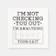 Cool and funny physical therapist design that says "I'm Not Checking You Out. I'm Ananlyzing Your Gait" in black modern typography. Perfect for a chiropractor or a trainer you know