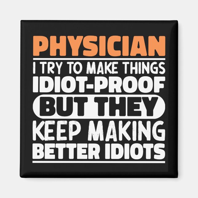 Funny Physician Sayings "Physician I Try To Make Things Idiot Proof But They Keep Making Better Idiots". Grab this Funny Physician design as a funny gifts for an awesome mum, dad or friend.