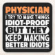 Funny Physician Sayings "Physician I Try To Make Things Idiot Proof But They Keep Making Better Idiots". Grab this Funny Physician design as a funny gifts for an awesome mum, dad or friend.