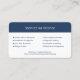 Present a professional, trustworthy image with this upscale minimalist medical business card. This design features a striking classic navy blue and white palette for a clean, elegant look with the template option to turn on gold shimmer accents. The front provides clear hierarchy with a bold title block and essential contact information. The back is designed for maximum function and conversion, clearly listing services and conditions in a scannable, structured format. perfect for physicians, family practitioners and clinic owners who require an elegant, modern and professional representation of their brand.