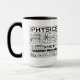 Physics Mug. With the following words at the back - Physics, Acceleration, Mass, Particles, Thermodynamics, gravity, hawking, big bang, black holes, electromagnetic, maxwell, quantum mechanics, strings, radiation, tesla, force, e=mc2, gas, atom, proton, nuclear, hertz, radiation, gamma , absolute 0, nanotech, orbit, frequency, weight