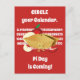 Postcard with a smiling, nearly-whole apple pie cartoon illustration. The numbers for Pi are visible for several decimal places. This postcard lets everyone know that Pi Day is coming. Give people time to grab their favorite calculator, buy some extra flour, and choose the perfect pie recipe.