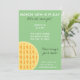 On the front of the invitation, the bottom left features the perfect pie to celebrate Pi Day with and to show your love of pie and pi. This pie is adorned with pi symbols both on the crust and for the lattice. This pie has a yellow (apple) filling! This is a perfect pie for Pi Day or any ordinary day to show your appreciation for pi! Background colour is customisable via the Customise It option.