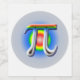 Wine bottle labels with my unique design of a chrome-look pi symbol on a multi-colour circle.