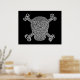 Pirate skull and crossbones shape with Pi filling. Or, the number sequence of Pi hand-lettered in the shape of a Jolly Roger. Either way, never be without Pi again with this quick-reference cheat-shirt! B/W graphic, on t-shirts, hoodies, cards, gifts.