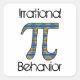 Colourful tie dye Pi symbol with the quote Irrational Behaviour in a grungy typeface on square stickers.