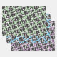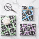 Math symbol themed Gift Wrap with black, white and each sheet with either blue, green and purple.