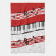 A fun music themed design for the keyboard and piano lover with curved piano keyboard and a music score design in red white and black with light grey music notes background