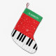 Grand piano keys Small Christmas Stocking for a piano player, pianist, student, teacher, musician, instructor, kids, friends, etc. Black and white piano keys with red and green stripes and snowflakes. Elegant personalised winter Holiday gift idea for him or her.