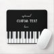 Mouse Pad with piano keyboard and customisable white script on black background. Nice gift for a piano student or teacher.