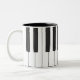 Great for the musician or music lover on your gift list, this coffee cup/mug features a design that looks like a piano keyboard!
