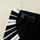Classic black and white keyboard with a curved flair. Added music notes add a festive look.