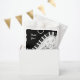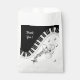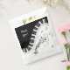 Classic black and white keyboard with a curved flair. Added music notes add a festive look.