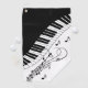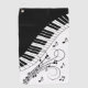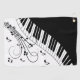 Classic black and white keyboard with a curved flair. Added music notes add a festive look.