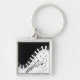 Classic black and white keyboard with a curved flair. Added music notes add a festive look.