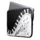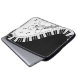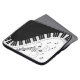 Classic black and white keyboard with a curved flair. Added music notes add a festive look.