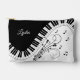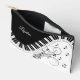 Classic black and white keyboard with a curved flair. Added music notes add a festive look.