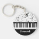 Create a personalised modern, stylish keychain featuring a piano keyboard and music notes in your choice of colours (shown in black and white) with your custom text, name and year in your choice of font styles. Ideal gift for musicians, pianists, music teachers and piano instructors. OPTIONS: The sample is shown on the acrylic round double-sided style--other shapes, styles or single sided options are available on the ordering page. ASSISTANCE: For help with design modification or personalisation, colour change, resizing, transferring the design to another product or if you would like coordinating items, contact the designer BEFORE ORDERING via the Zazzle Chat MESSAGE tab below or email makeitaboutyoustore@gmail.com.
