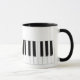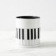 Great for music lovers, teachers and piano players. Black and white piano keys surround this mug on all sides,