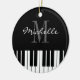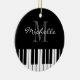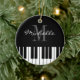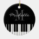 Grand piano keys Christmas tree ornament for piano player, pianist, student, teacher, musician, instructor, kids, friends etc. Custom black and white name monogram with classical music instrument graphic. Elegant script typography template. Cute personalised winter Holiday decoration gift idea for him or her. Classy xmas accessories fro friends and family. Double sided.
