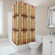 Shower curtain with hand drawn piano keys repeated in 9 squares, art by Kristie Hubler, with gold, brick red, chocolate brown, and ivory