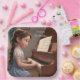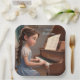 These birthday party plates feature a sweet little girl playing the piano.