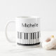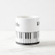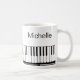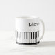Modern, stylish mug with piano keyboard and music notes in black and white personalised with your name in a handwritten script. Ideal for music teachers, musicians and music professionals. CHANGES: You can change the white background colour or the text font style, colour, size and placement by clicking on EDIT for a custom look or simply delete the sample name to leave that area blank. OPTIONS: The sample is shown in the 11 oz size mug; other sizes and drinkware styles are available on the ordering page