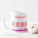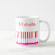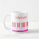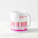 Modern, stylish mug with piano keyboard and music notes in black and white personalised with your name in a handwritten script. Ideal for music teachers, musicians and music professionals. CHANGES: You can change the white background colour or the text font style, colour, size and placement by clicking on EDIT for a custom look or simply delete the sample name to leave that area blank. OPTIONS: The sample is shown in the 11 oz size mug; other sizes and drinkware styles are available on the ordering page