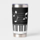 Modern, stylish and personalised Insulated Tumbler Travel Cup featuring piano keys or keyboard and music notes with a name, monogram or your custom text in an editable font style and your choice of background, notes graphic and text colours (shown in black and white). Ideal for music teachers, musicians, music professionals or music lovers. ASSISTANCE:  For help with design modification or personalisation, colour change, resizing, transferring the design to another product or if you would like coordinating items, contact the designer BEFORE ORDERING via the Zazzle Chat MESSAGE tab or email at makeitaboutyoustore@gmail.com.