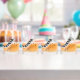 Classic black and white keyboard with a curved flair. Added music notes add a festive look.