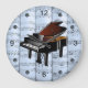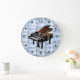 Piano ~ Rolled Sheet Music ~ Blue Tint Background Large Clock