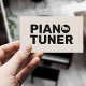 A simple business card with a beige background for piano tuner or technician. It also could be used for piano teacher or music lessons. The back comes with fully customisable contact information.