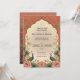 The portrait layout showcases a premium color palette, ornate patterns, and temple-inspired aesthetics, while offering ample space for customizable event details, making it perfect for bilingual Indian weddings and multicultural celebrations. All text can be easily edited using Zazzle’s design tools.