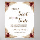 Pick a Seat not a Side Pampas Grass Wedding Poster